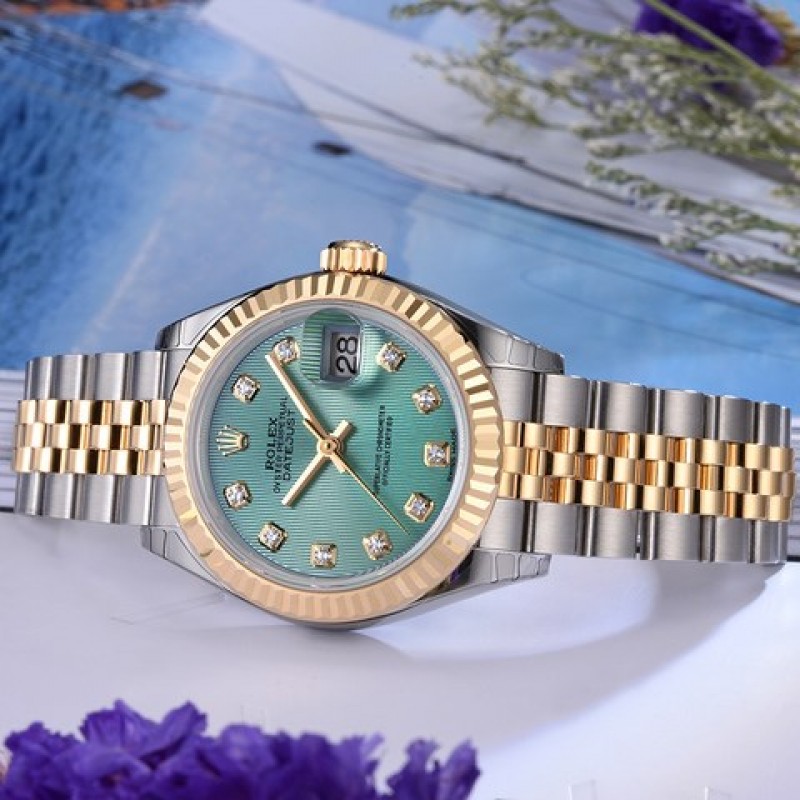 Rolex-Ladies Datejust Series 279173-63343 Green Bar 10 Diamonds Ladies Automatic Mechanical Watch